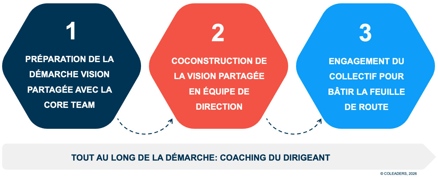 Nous vous accompagnons durant les trois grandes étapes de la démarche Vision Partagée :